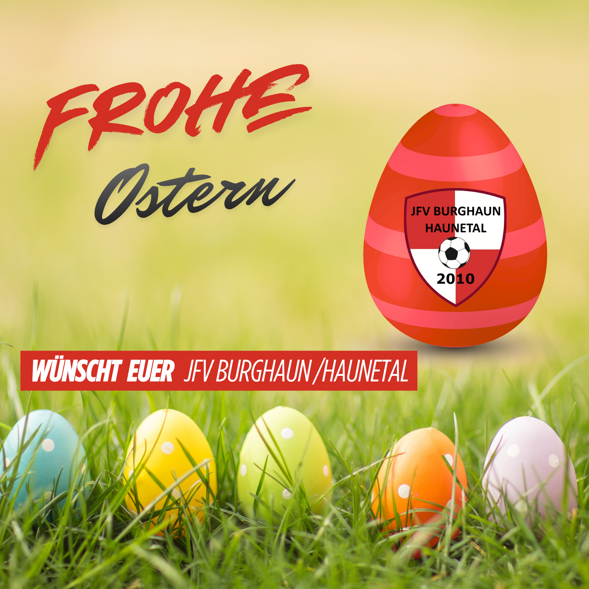 Liebe JFV-Familie, wir wünschen allen Mitgliedern, Trainerinnen und Trainern, Schiedsrichtern, Eltern, Freundinnen und Freunden unseres Vereins ein frohes und erholsames Osterfest!